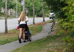 是啊 看见年轻妈妈,停下步子,摘几颗熟了的Black Berry,递给小车里的宝宝 |