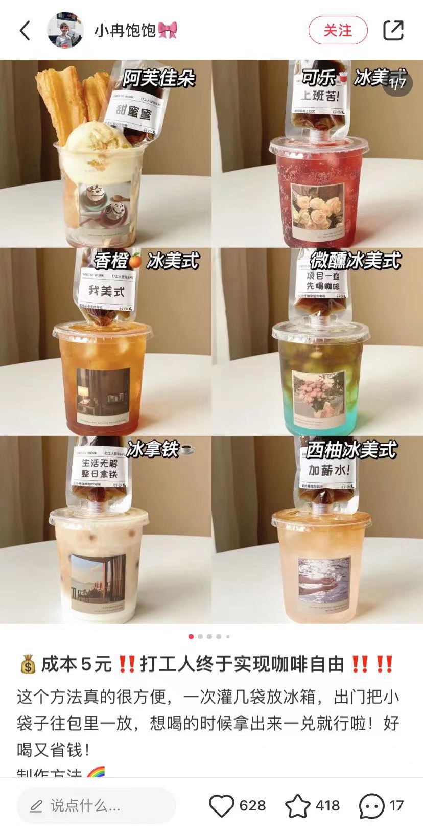 同时,潮流咖们很会玩。他们依靠咖啡液能与冷水混合的特点,发明出N种往往连品牌方都没想过的咖啡特饮,每一种都话题度刷爆。