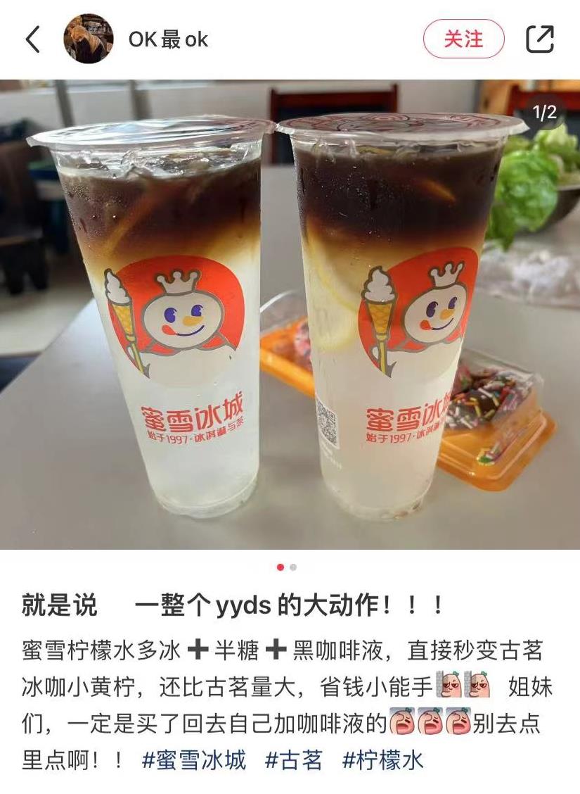 喊话蜜雪冰城:网友帮你把柠檬咖啡调配出来了,快给研发费!/小红书博主@OK最ok
