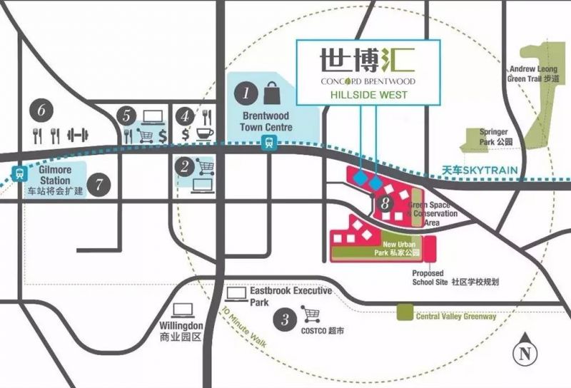 Concord Brentwood 世博汇 第1期隆重推出的 Hillside West,位于社区的西北角,坐拥最接近 Brentwood Town Centre 天车站的位置。