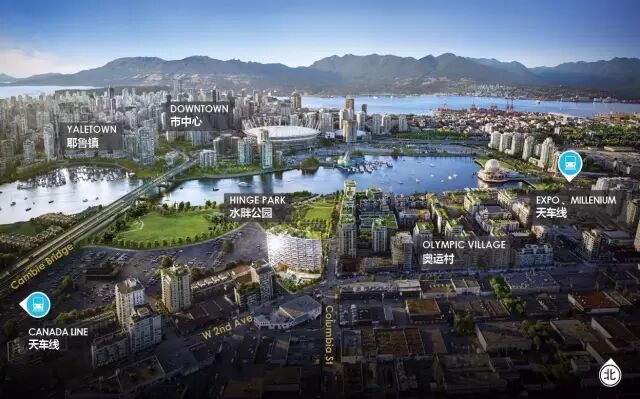 四通八达的交通网奠定了这个地区重要的枢纽地位,两条天车线Expo Line与Canada Line 汇聚于此。紧密连接本拿比,素里,新西斯敏,列治文与机场。穿梭往返的水上巴士,还能将你迅速带到Granville,耶鲁镇,或是Kitsilano。而周边众多的公交车线路,以及长长的海边步道和自行车道,为出行提供了更多选择。银行、超市、餐馆以及其他公共服务设施齐全,基本在几百米的步行范围之内。项目位置及周边一览