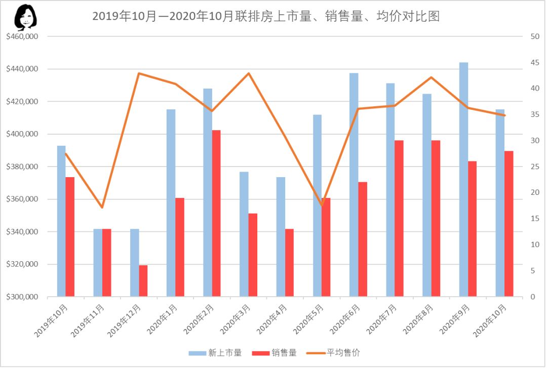 联排房:均价基本稳定 2020年10月,纳奈莫联排房涨幅趋缓,成交均价为$411,610,而上个月均价是$416,184,跌幅1.1%。去年同期,纳奈莫联排房的均价是$387,753。