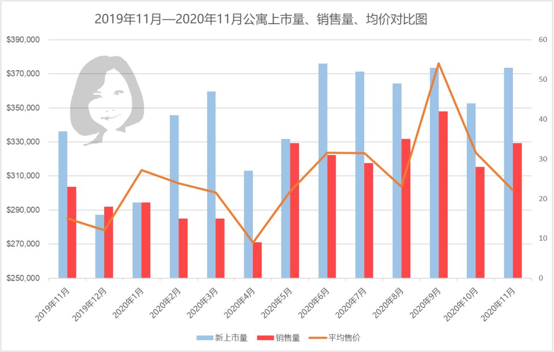 公寓:均价小幅下跌 2020年11月,纳奈莫公寓的均价为$301,782,而上月均价为$323,736,去年同期则是$285,222。11月均价高于去年同期5.8%,比上月回落6.78%。近期,纳奈莫公寓市场有回落趋势,主要原因应为新冠疫情所带来的高密居住恐惧症。