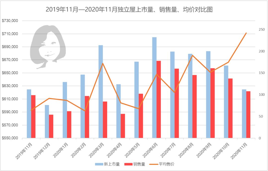 独立屋:均价突破70万 2020年11月,纳奈莫房地产市场再次出现历史性突破,独立屋均价达到$711,291。这种突破主要是由两方面的原因造成的:一方面,中低端口独立屋价格的不断上扬;另一方面,高价位房产价格继续回落,性价比上升,买家日益踊跃。