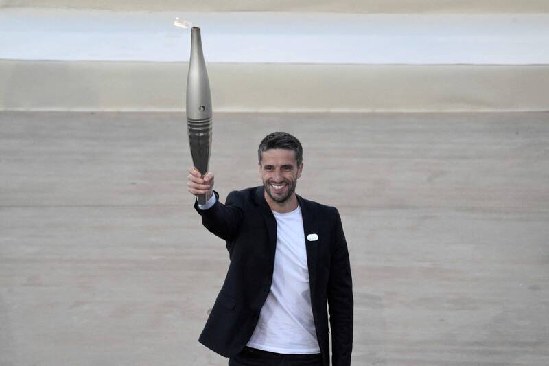 巴黎奧運會組織委員會主席艾斯堂格4月26日在希臘雅典帕那辛納克體育場的奧運聖火交接儀式上高舉聖火。聖火預定5月8日抵達法國馬賽。(法新社)- 新聞來源於其它媒體,內容不代表本站立場!