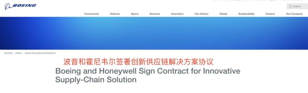 波音和霍尼韦尔是老合作伙伴了