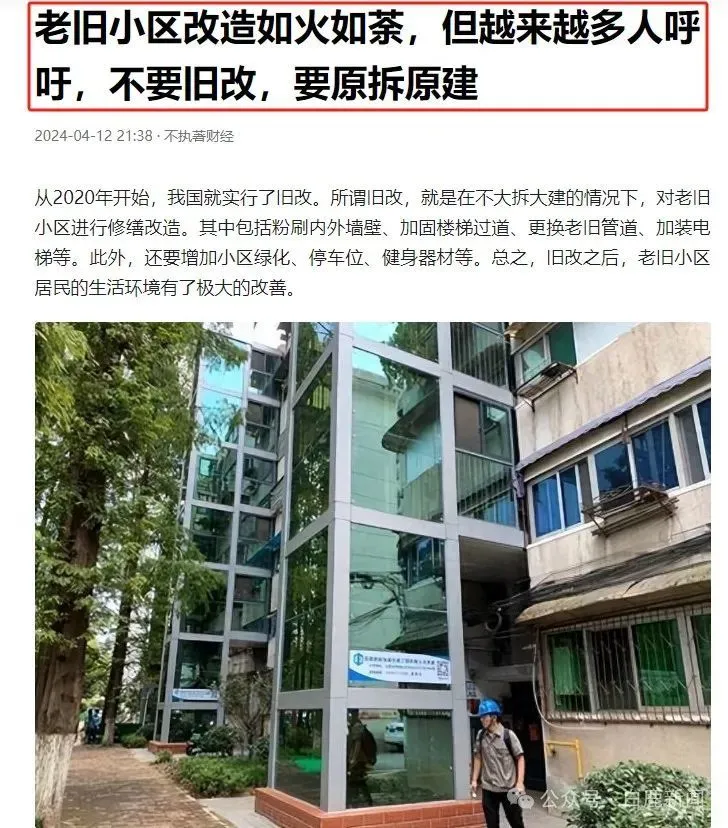 對於居民的這壹願望,上海富大集團首席經濟師、財經評論家最近在自媒體號“不執著財經”今年4月刊發《老舊小區改造如火如荼,但越來越多人呼吁,不要舊改,要原拆原建》文章稱,從2020年開始,我國正式實行了舊改,重點改造2000年底前建成需改造的城鎮老舊小區。政府實施舊改肆年來,主要存在兩個方面的弊端:壹方面,舊改的資金主要是政府出壹部分錢,居民也要承擔壹部分費用,比如加裝電梯的部分費用,需要居民來承擔。但是,很多小區居民不願意承擔這筆錢。