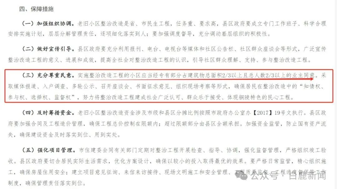 2023年6月30日,銅陵市住建局叁級調研員盛昌寶在接受當地媒體訪談時表示,在老舊小區改造中,市裡都充分征求了居民意見,並由專業規劃單位與居民代表共同參與設計,壹個小區制定壹張圖紙。