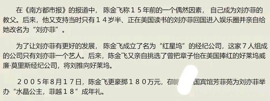 陈金飞甚至专门成立了经纪公司,组建团队,多年来,只力捧干女儿刘亦菲一个人。