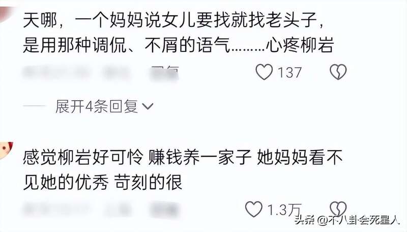 很快,柳岩妈妈的打压式教育登上了热搜,受到广泛关注和讨论,评论区都替柳岩感到委屈,在这样的环境下长大,应该很压抑。