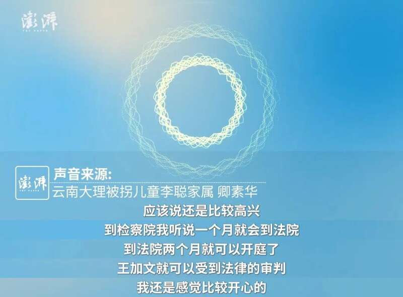 澎湃新闻联系到案件受害者李聪母亲卿素华,她表示听到这个消息很开心,到法院两个月就可以开庭,王加文可以受到法律的审判了。