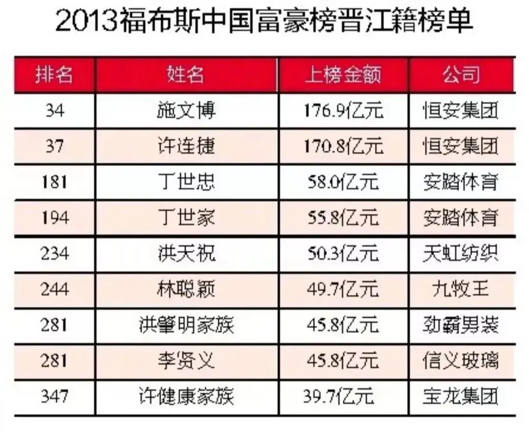 2013福布斯中国富豪榜晋江籍榜单