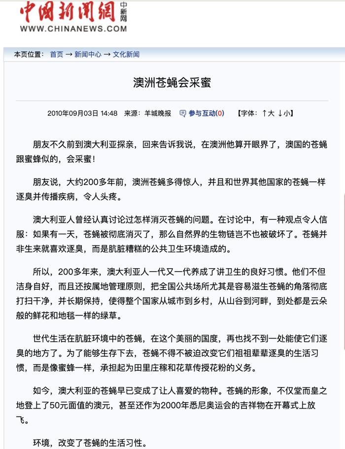 比如因深感澳大利亞人講衛生樹新風的號召,短短200年內,澳洲蒼蠅就完成了變身蜜蜂的“物種轉換” 。