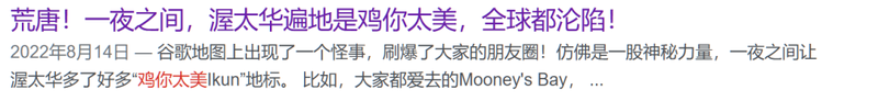 这个风潮是从何开始的,发现君无从考证,但是从网上的新闻资讯来看,在2022年时,加拿大就开始出现将地名改为“鸡你太美”系列的风潮了。