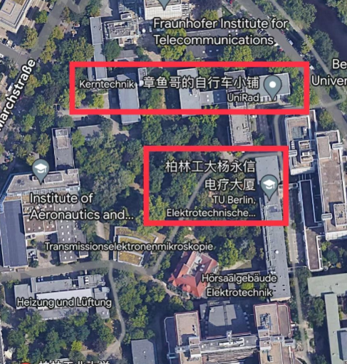 德国还惊现“章鱼哥的自行车小铺”和“柏林工大杨永信电疗大厦”等。