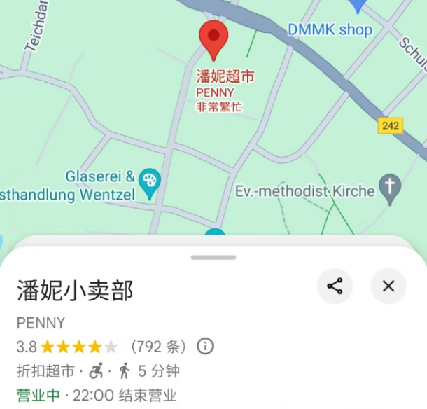 PENNY超市被改为“潘妮小卖部”,还挺接地气。无论是李豆还是潘妮,听起来都像个有名有姓的中文名字。