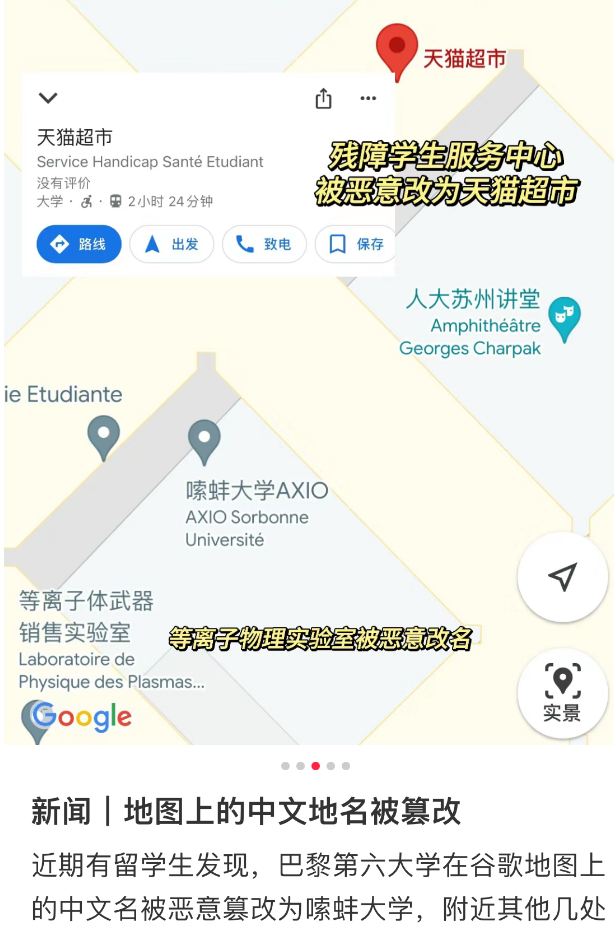 这些名字修改,也逐渐变得越发离谱,例如在发布有人将残障学生服务中心,改为“天猫超市”,把巴黎第六大学改为“嗦蚌大学”,就引发了吐槽。