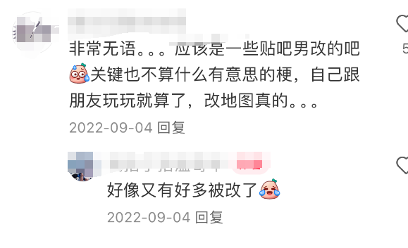 04玩梗需要有底线对于这个现象,有些人觉得有趣,甚至还想亲自去尝试下。也有网友觉得,修改公共地点,其实是不合适的。“非常无语,自己跟朋友玩玩就算了,改地图真的......”