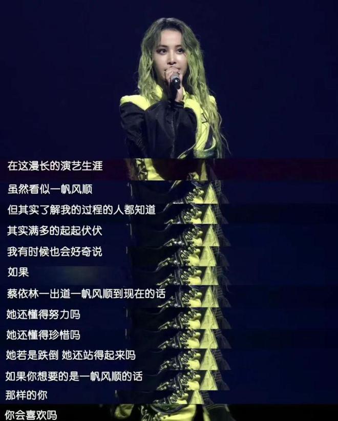 蔡依林小小的身躯零仃站在舞台中央,她声音发颤:“我从来不把我太负面的东西跟大家分享,因为我觉得我的责任就是要把欢乐带给大家。”