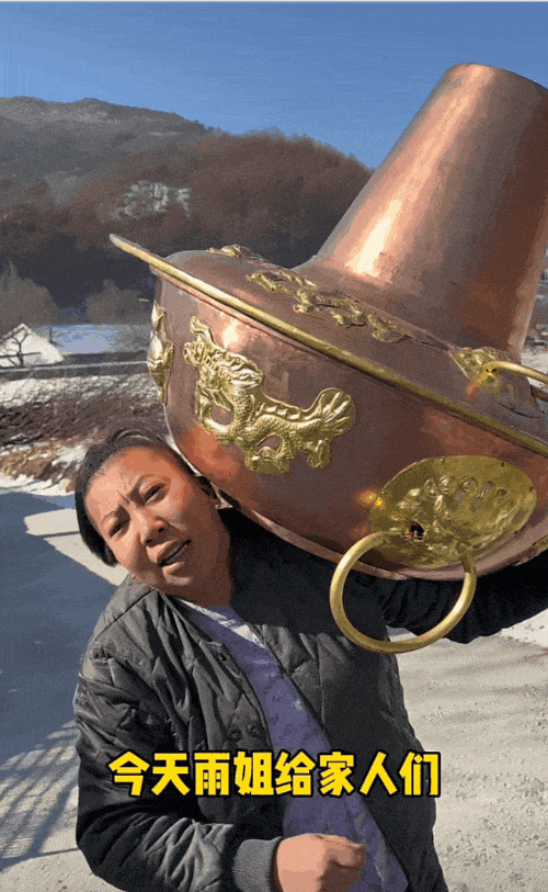 扛起半扇豬、扛半人高的銅火鍋、徒手給白菜焯水、在冰水裡撈鹹菜、扛上百斤的大缸、放倒幾百斤的年豬……這些,都是雨姐展現的日常。