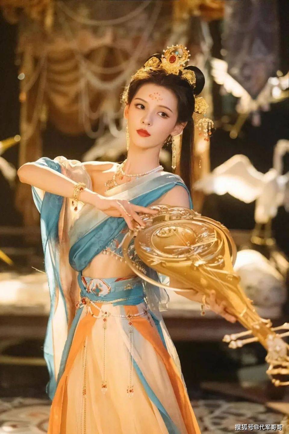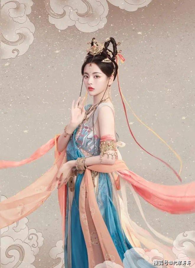 古力娜扎以其高贵冷艳的气质着称,她的敦煌飞天造型更是将这份气质发挥到了极致。华丽的服饰,精致的妆容,再加上娜扎那冷峻的眼神,仿佛她就是飞天中的女王,统领着这片梦幻的天空,让人不敢直视其锋芒。