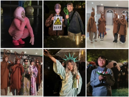上海万圣节派对,年轻人借此表达对中共不满,争取自由。(网友提供,记者合成)