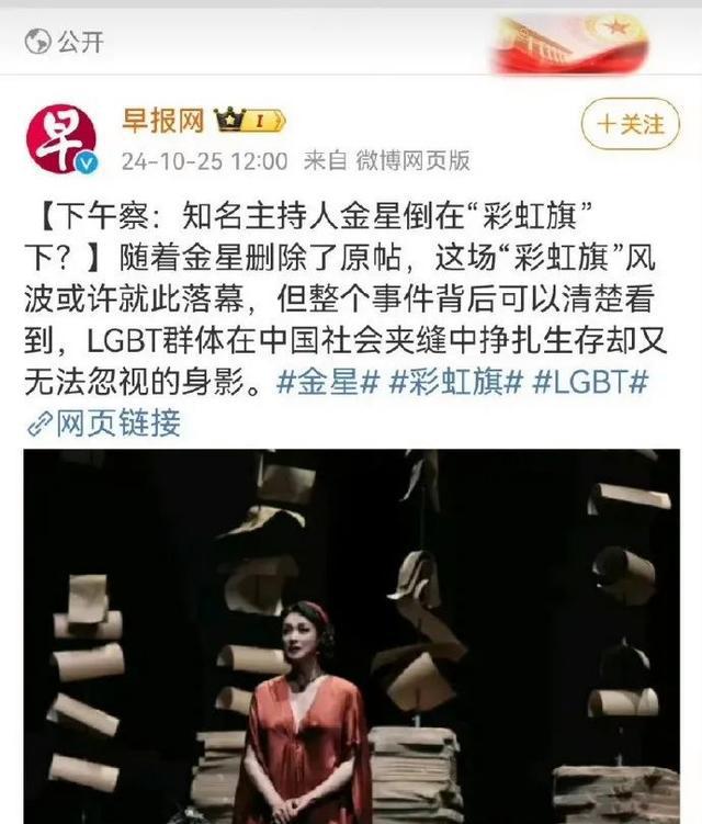2024年1月,金星在太原演出謝幕時,搞了壹出展示LGBT彩虹旗的鬧劇,大家都看到眼裡。