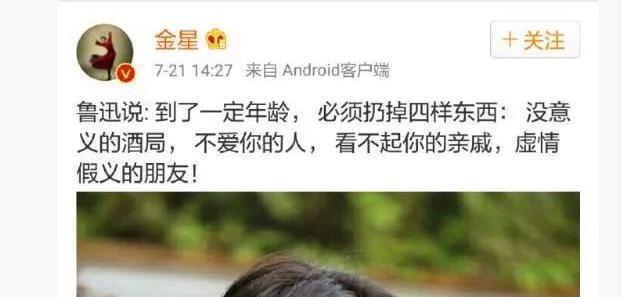 其實,我是最早被金星拉黑的網友之壹。7年前的事了,起因也是魯迅。