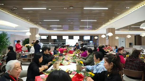 “插花要注意材料选择、剪裁技巧、色彩搭配……”近日,大有尚品社区餐厅在非就餐时间“变身”手工坊,插花老师在“海淀食堂”为居民们上了一堂有趣的艺术插花课。