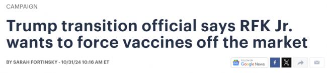在RFK一直传播的反疫苗方向上,川普过渡团队的成员已经承认可能涉及将疫苗下架: