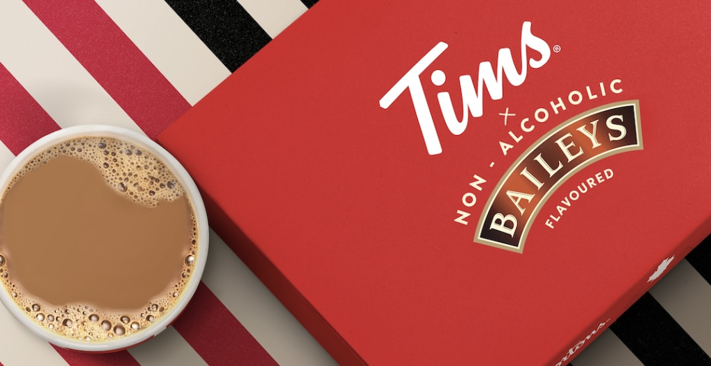 应广大顾客的要求,Tim Hortons 再次推出各种百利口味的无酒精饮料,包括百利奶油咖啡、百利拿铁、百利冰咖啡、百利波士顿奶油梦幻甜甜圈和新百利梦幻热巧克力等等。 还可以点其他美味的节日饮料,如Candy Cane 热巧克力(Candy Cane Hot Chocolate) 或 Candy Cane白热巧克力 (Candy Cane White Hot Chocolate)等。
