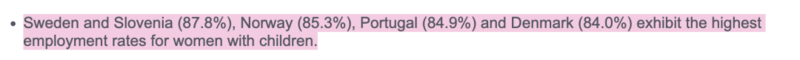 据调查,瑞典与斯洛文尼亚是欧洲有子女的女性就业率最高的国家。