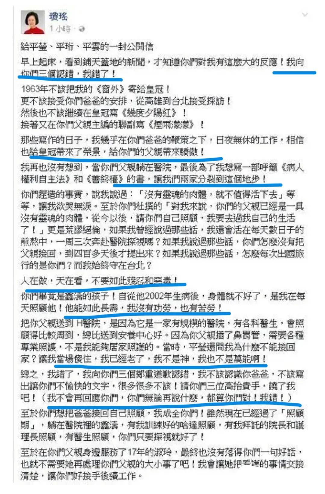 在臨終前那段時間,她還在回復粉絲的留言。粉絲稱平鑫濤的3個子女不懂得感恩,享受瓊瑤和平鑫濤沖在前面打下的江山,是既得利益者。