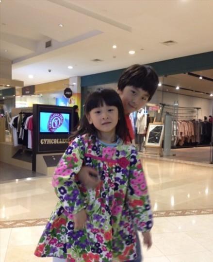 有壹個模特爸爸,小時候的天天看起來腿就特別長。
