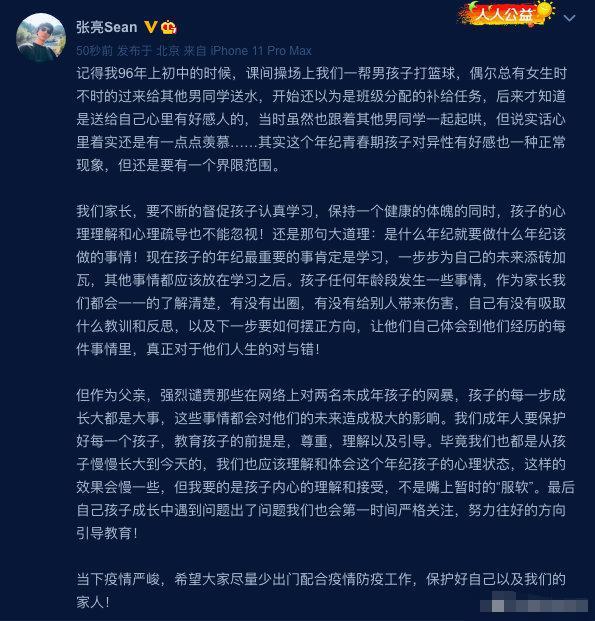但他也無法接受大家對兩個孩子的網暴,認為未成年人的成長需要好好引導。