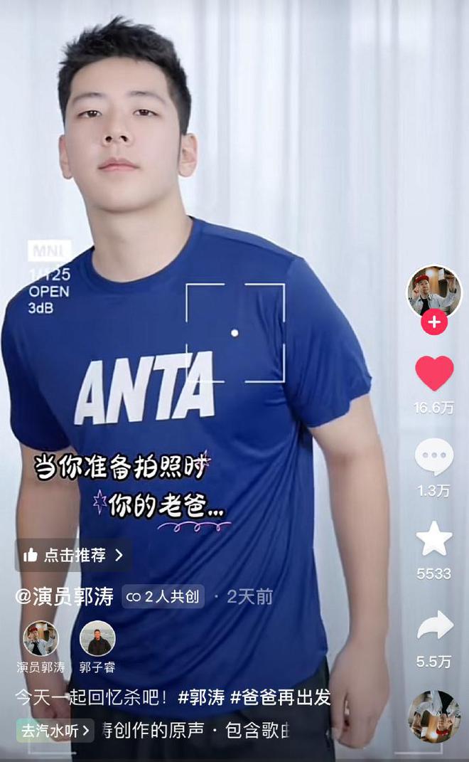 現在石頭已經17歲,身高超過壹米八,已經趕上了爸爸郭濤。
