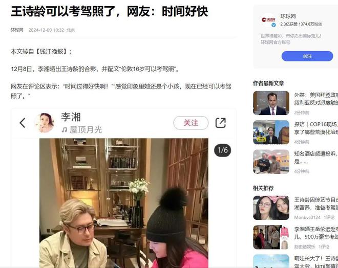 王詩齡可以考駕照了,網友:時間好快(環球網 2024-12-9)
