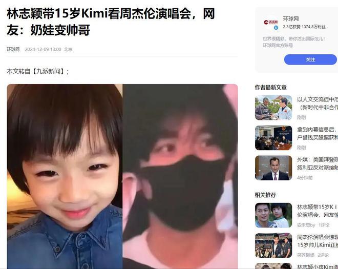 林志穎帶15歲Kimi看周傑倫演唱會,網友:奶娃變帥哥(環球網 2024-12-9)
