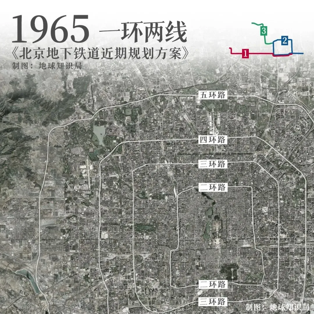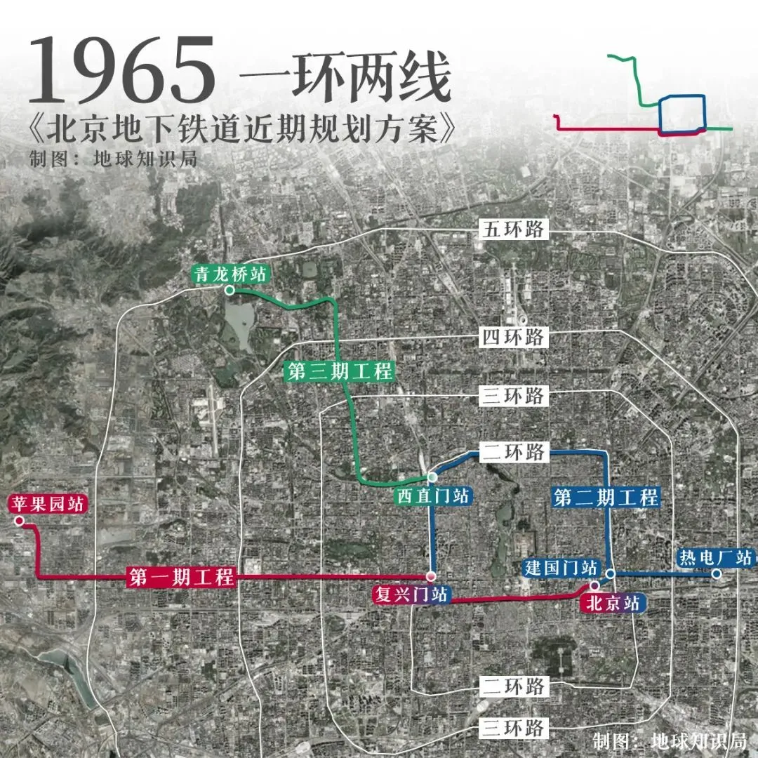 在1965版地下铁道近期规划方案中,第一期和第二期工程可以看作是现在北京地铁1号线和2号线的雏形。从“西直门站”到“青龙桥站”(又称西颐线)的三期工程部分线路可以看作是3号线最初的雏形,但随着轨道交通规划发展,西颐线的线路走向更像是现在的北京地铁4号线。