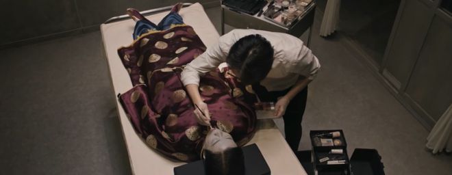 片中有一个委托人,是手机不离手的大款,妻子丧礼当天还在忙公事,根本看不出任何丧亲之痛,反倒是突然出现的女人苏苏,苦苦哀求想见亡者最后一眼。