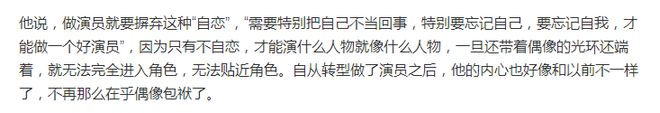自己虽然是偶像出身,但为了做演员,就会摒弃掉以前做爱豆时的“自恋”,且越来越不在乎偶像包袱。