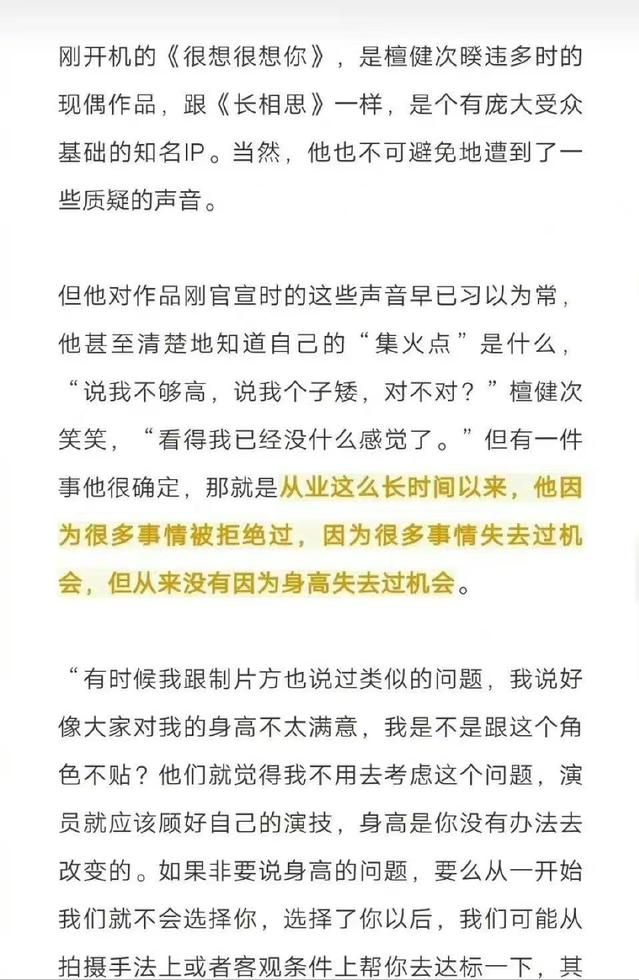 “说我不够高,对不对?我已经没有什么感觉了,因为从来没有因为身高失去过机会……”