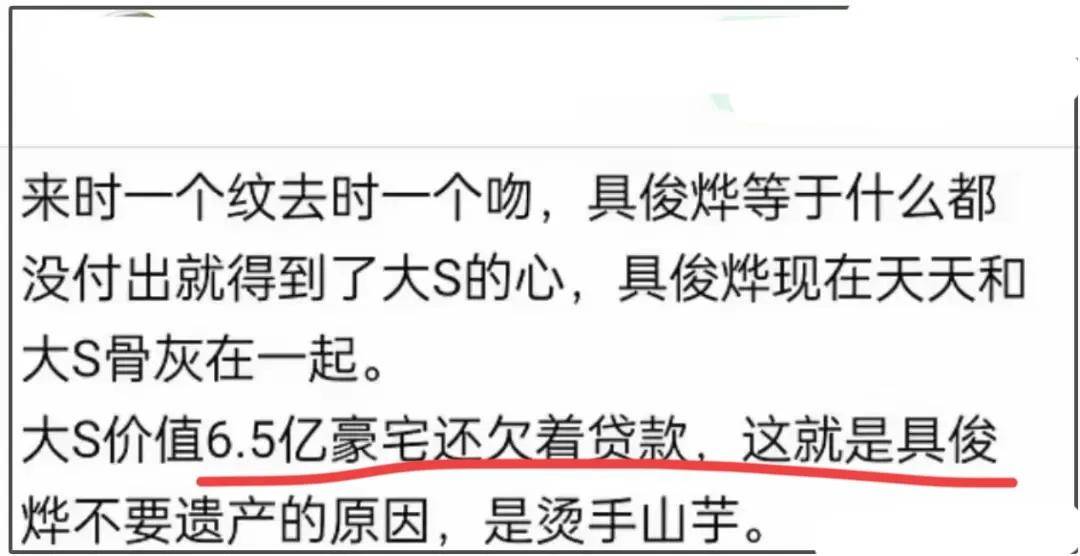 堅決不吐出大S存在她這個母親手裡代為保管的財產,與此同時,對具俊曄嚴防死守,害得對方只能第壹時間發聲明,放棄大S遺產的繼承權,壹切權益交由岳母黃春梅處理。