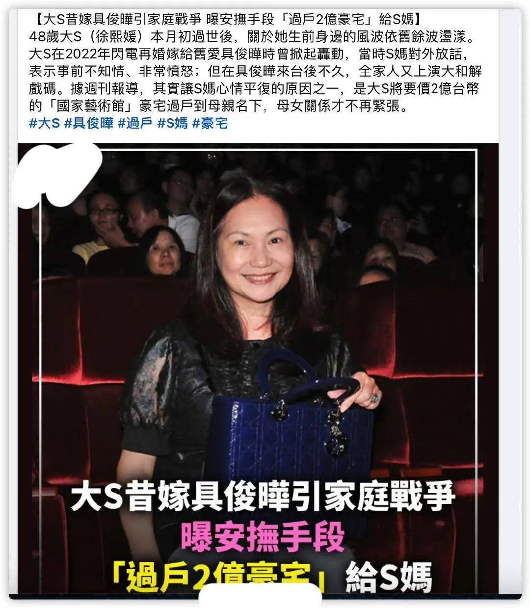 大S絕不會想到,她離世後,第壹個在遺產爭奪戰裡,露出 “獠牙”,暴露真面目的,會是她的母親黃春梅。