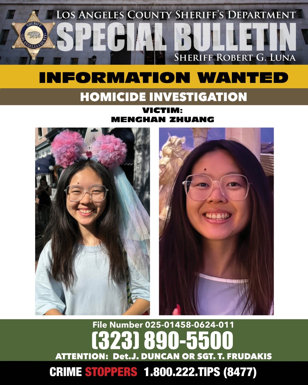 昨天周四,洛杉矶县警局表示,涉嫌杀害庄梦涵的凶手已经于上个月被捕。