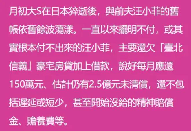而壹開始,S媽也曾經打過汪小菲的主意,想讓他接著償還百萬房貸,畢竟汪小菲是第壹責任人,反正撫養權都歸他了,那麼房貸幹脆也就壹起還了吧。但汪小菲這次學聰明了,不再沖動用事,整個過程中幾乎都沒過多幹涉S家的家務事兒,