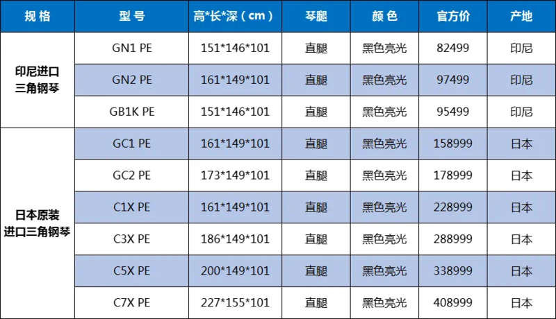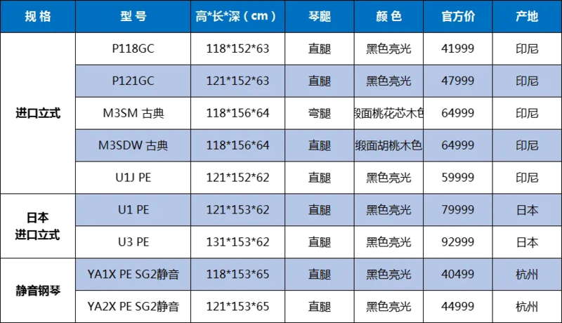 圖注:雅馬哈鋼琴價目表,數據來源於網絡