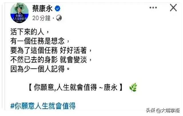 不仅是黄安,蔡康永也劝过,就算为了大S,也要好好活着。过往的事,就随它去吧。