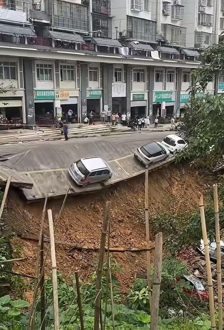 广西柳州一路段突发塌陷,多辆小车坠落坡下,当地:无伤亡,已让部分群众撤离6月3日,广西柳州三江侗族自治县古宜镇一处突发塌方引发关注。相关现场视频显示,一排车辆停在临坡处的停车位,该坡下方的土层已经空缺。有车辆接连掉下,部分路面也损坏破裂。