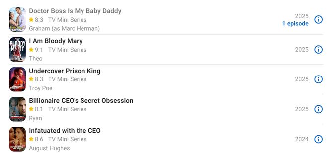但当他拍摄的短剧陆续上映后,在IMDb上竟然全都超过了8分。